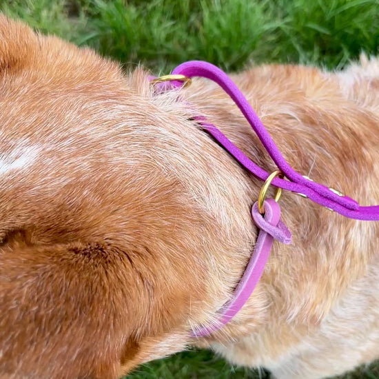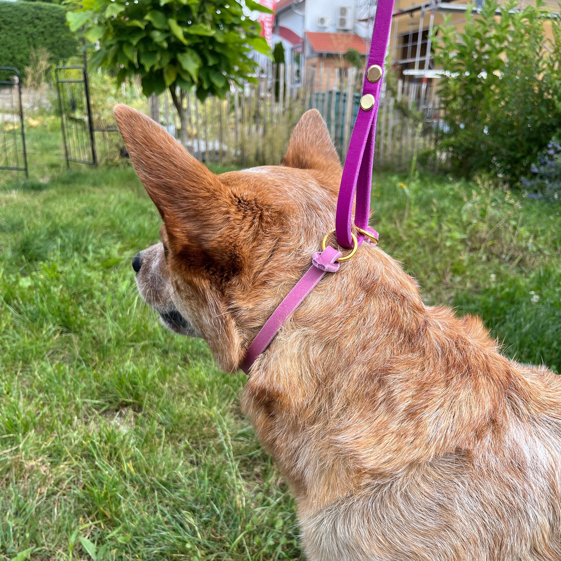 Die praktische innovative Hundesportleine "Elsa" eignet sich ideal für Hundesportler. Sie lässt sich am Start des Agility, Hoopers oder Obedience Parcours einfach abnehmen und durch ihr handliches kleines Design in der Tasche verstauen. So ist der Hund direkt nach dem Start wieder sicher angeleint. Das Halsteil ist ein Zugstopp Halsband, die Leine eine 1m Leine mit Handschlaufe.